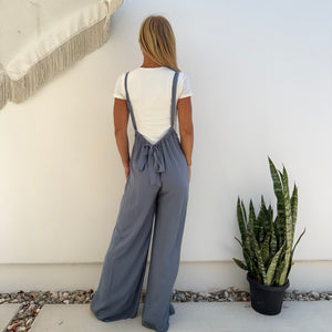 Suspender Wide Leg Jumpsuit in Slate Blue